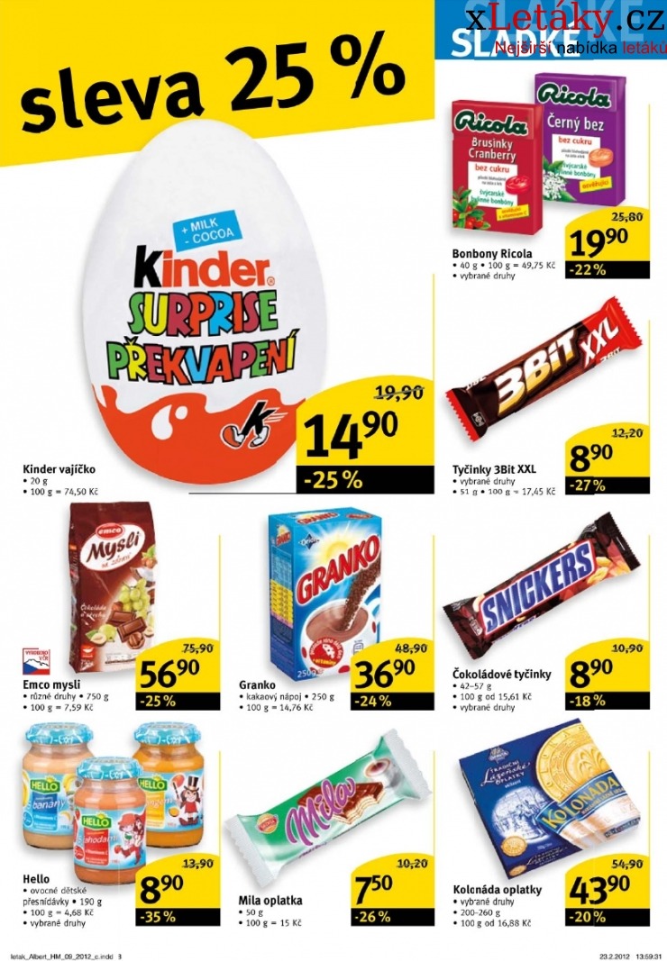 Prohlédněte si leták Albert Hypermarket leták s platností 29.02.-06.03.2012. Na online-letaky.cz naleznete všechny letáky Albert Hypermarket